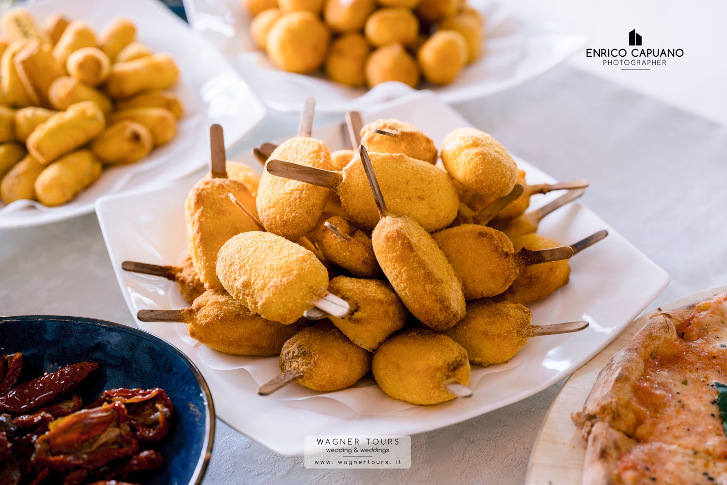 Step into an enchanting pre-wedding atmosphere with a pre-party experience designed to make the day before the celebration truly unforgettable. Your culinary journey begins with a refined selection of authentic Italian salumi, honoring the most genuine flavors of tradition. It continues with the evocative ‘Delights of the Coast’, a sensory voyage inspired by the magic of the seaside. You can further personalize the experience, adding a unique touch that makes the celebration feel truly your own. The grand finale is the Dessert Buffet, an irresistible corner where every creation offers a moment of pure delight. A perfect prelude—elegant, heartfelt, and full of true Italian taste—to set the tone for the special day ahead