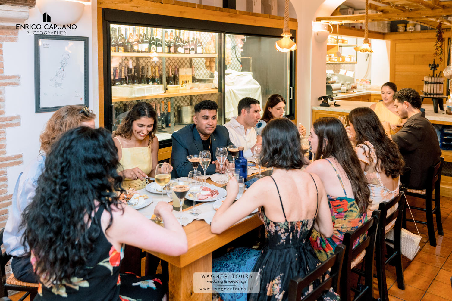 The buffet-style format creates a wonderfully social atmosphere, encouraging guests to mingle, share, and truly enjoy the evening together — just like in a classic Italian celebration.