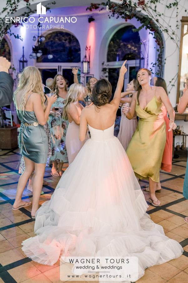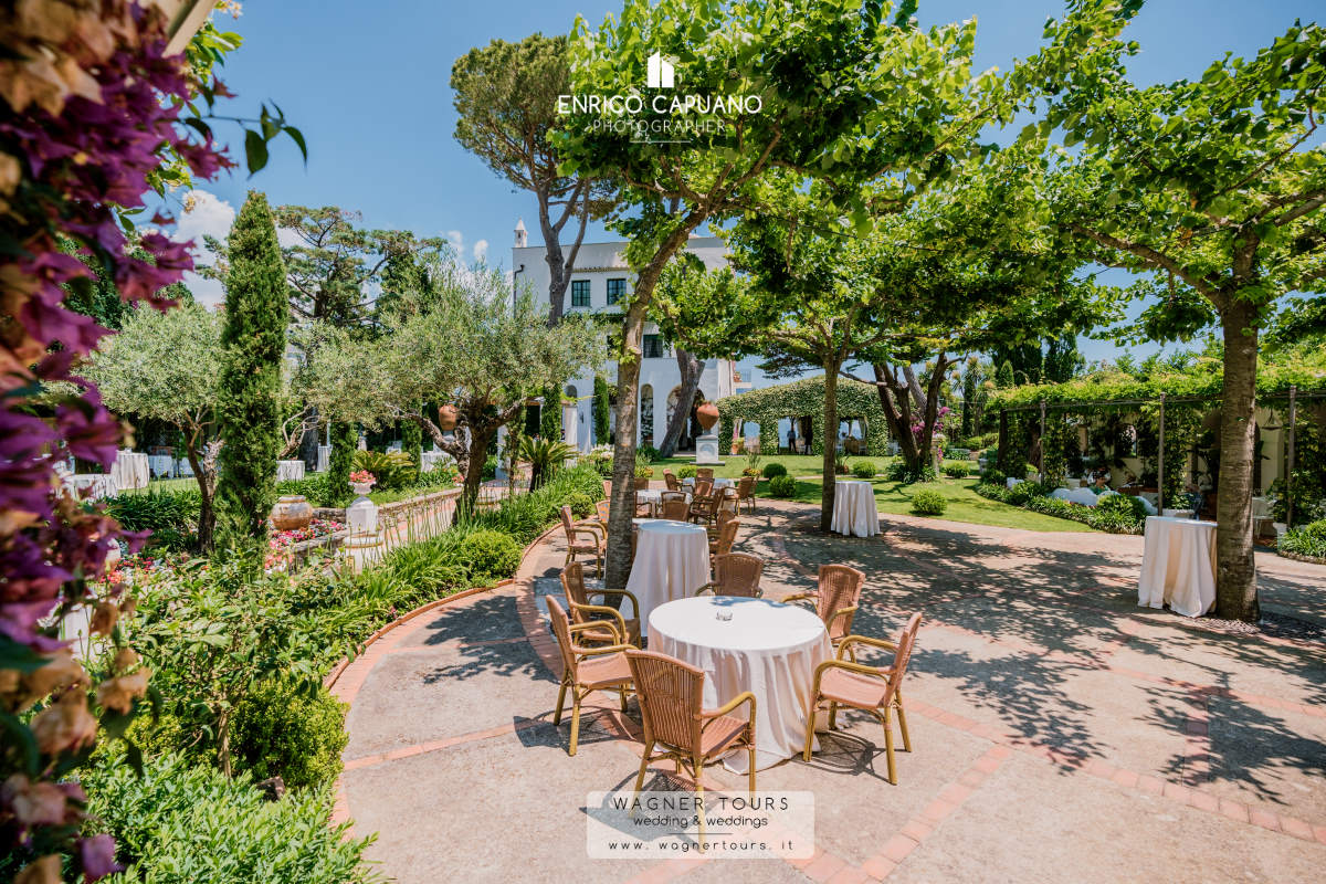 info@wagnertours.it all the photos in this website are exclusive of Wagner Tours and all the weddings are planned by Mario Capuano the local wedding planner in Ravello !!! - In the villa we can organize other religious rites ceremonies (non catholic -) symbolic , in characteristic areas, prepared ad hoc for the function, either inside or outside always with a unique splendid sea-view.In one of the halls, with soundproof acoustics, it possible to organize open bars with DJ or live bands