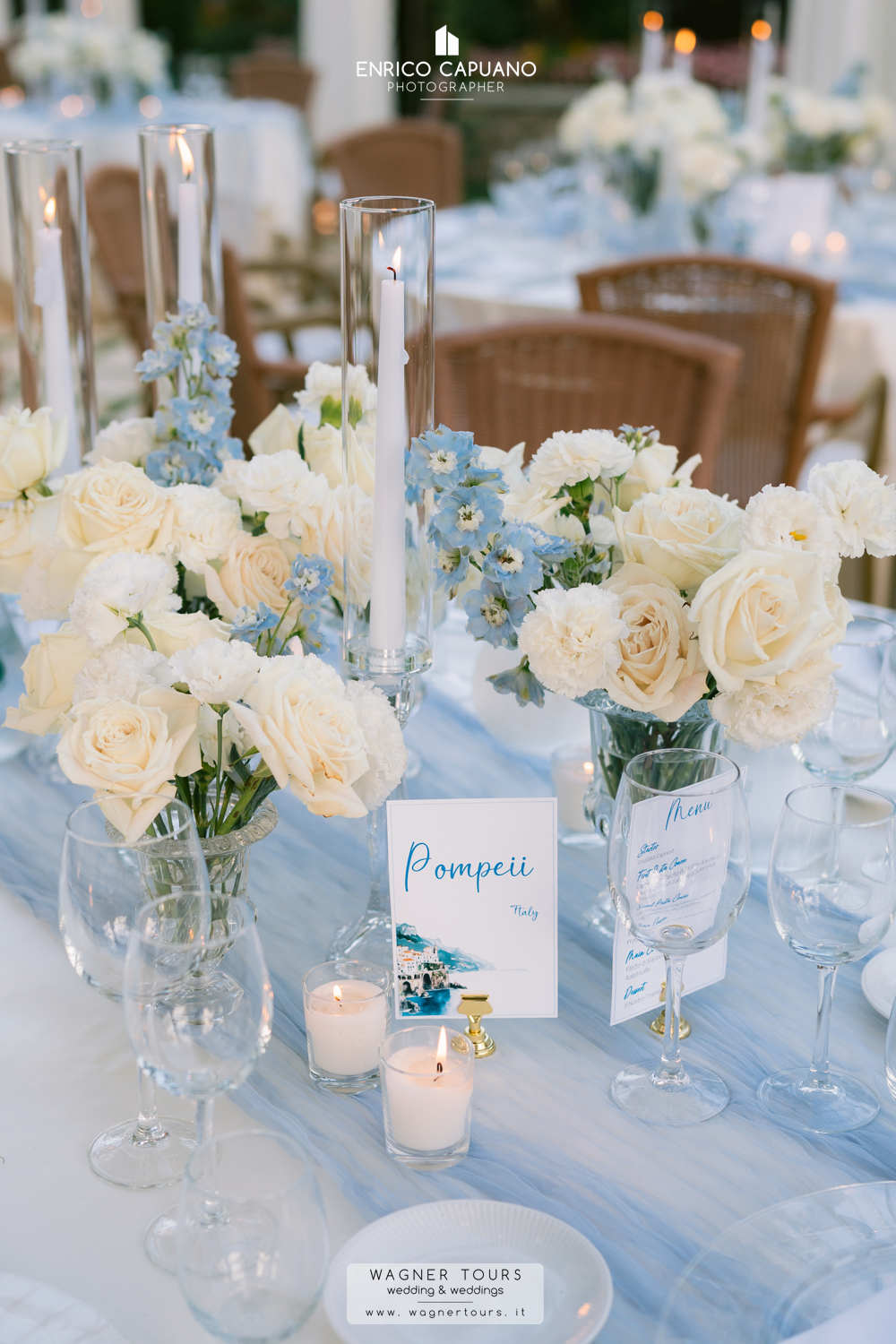 All the photos on this page and throughout the website showcase setups personally curated by local wedding planners Mario Capuano and Annamaria Staiano.